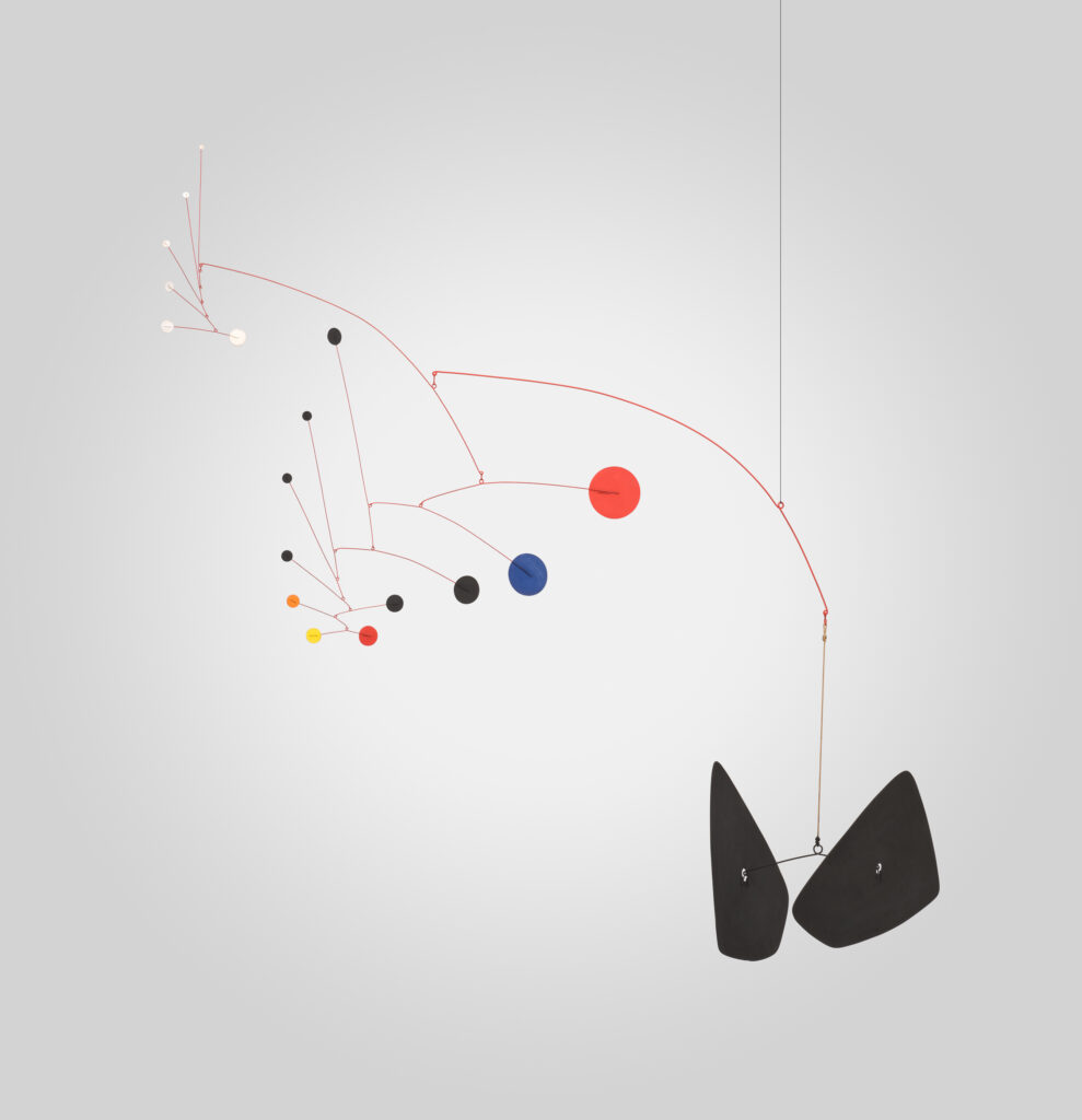 Calder had a major show in 1946 at Galerie Louis Carré in Paris for which Jean-Paul Sartre wrote a seminal essay. He designed sets and costumes for a number of theatrical performances and designed a huge acoustic ceiling for the Aula Magna auditorium at Universidad Central de Venezuela. In 1952, Calder represented the United States at the Venice Biennale, winning the grand prize for sculpture.
