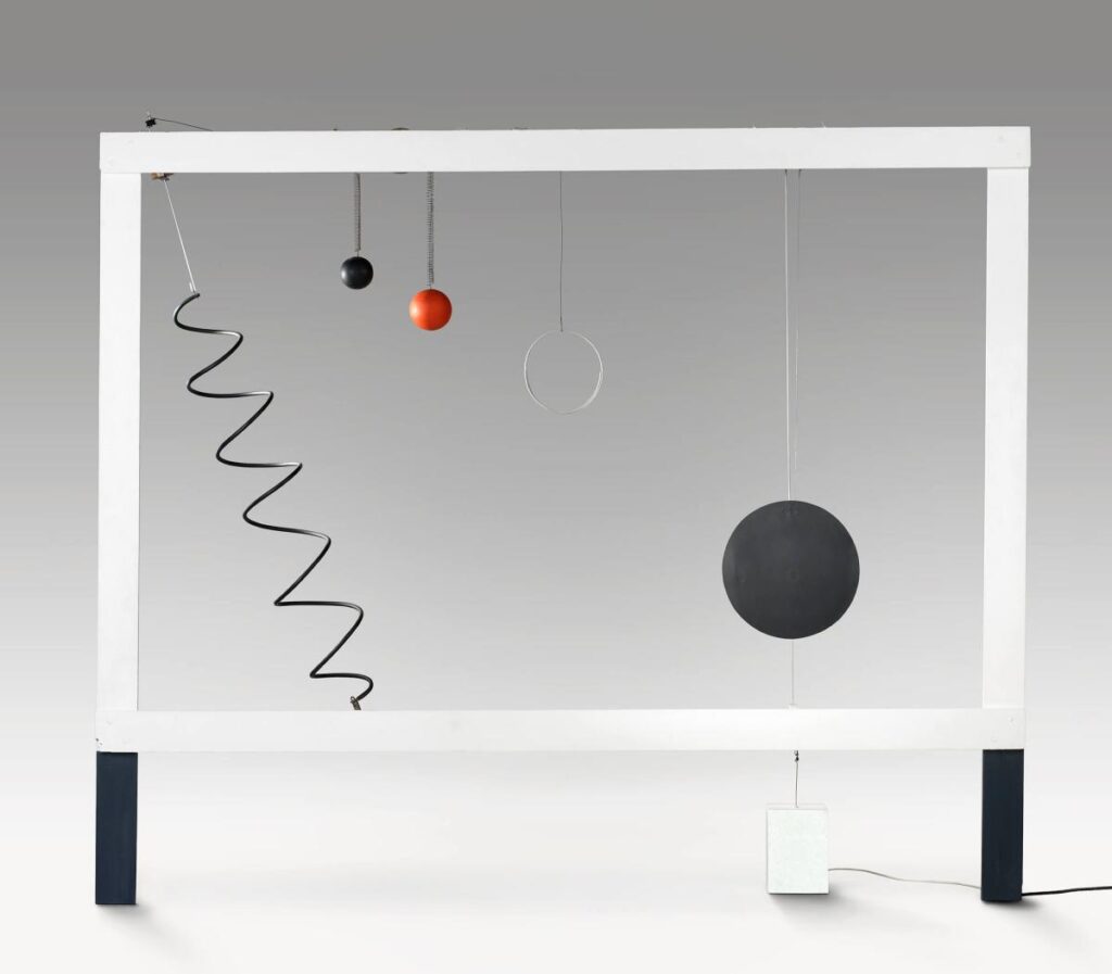 Solo ExhibitionFollowing a visit in October of 1930 to Piet Mondrian’s studio, where he was impressed by the environmental installation, Calder made his first wholly abstract compositions and invented the kinetic sculpture now known as the mobile. Coined for these works by Marcel Duchamp in 1931, the word “mobile” refers to both “motion” and “motive” in French. He also created stationary abstract works that Jean Arp dubbed “stabiles.”