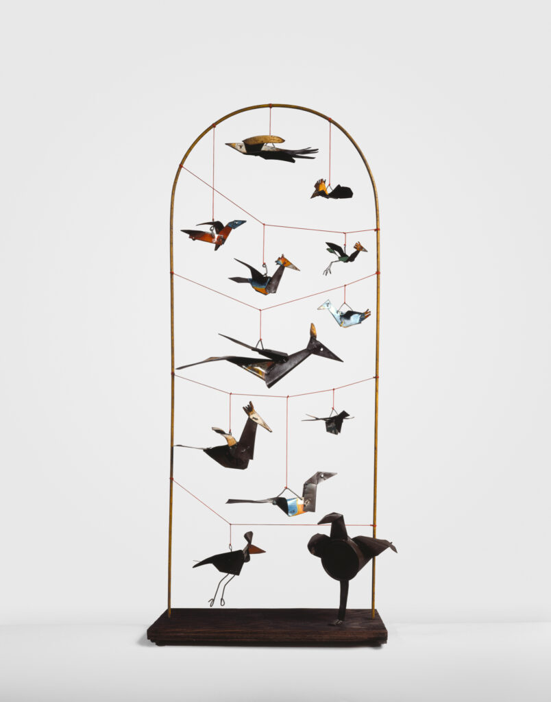 Calder had a major show in 1946 at Galerie Louis Carré in Paris for which Jean-Paul Sartre wrote a seminal essay. He designed sets and costumes for a number of theatrical performances and designed a huge acoustic ceiling for the Aula Magna auditorium at Universidad Central de Venezuela. In 1952, Calder represented the United States at the Venice Biennale, winning the grand prize for sculpture.